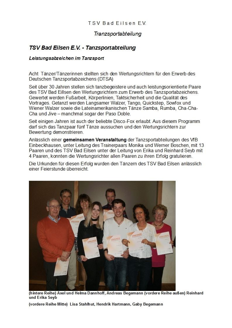 Seit über 40 Jahren sind nun das Ehepaar Erika und Rainer Seyb als vielfache Träger der Deutschen Tanzsportmedaille am Ende ihrer Trainerlaufbahn angekommen. Beide waren bis dato als Trainer B und C, als Veranstalter diverser Tanzsportwettbewerbe und selbst als erfolgreiches Tanzsportpaar viele Jahrzehnte überregional bekannt und haben nicht nur den TSV sondern ihren Sport in aller Ehren vertreten. Der TSV verdankt den Seybs seinen guten Ruf und bedankt sich für die schönen und erfolgreichen Jahrzehnte.